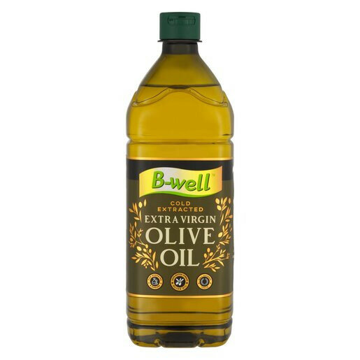 B-Well Extra Virgin Olive Oil, a 1L bottle in the Oils & Vinegars category, has a shelf life of 180 days when stored at ambient temperature. It weighs 1,000g.