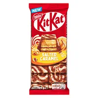 Kit Kat Salted Caramel is a 99g chocolate slab that combines milk chocolate with a salted caramel filling. Store in a cool, dry place with a shelf life of 365 days.