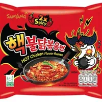 Samyang Buldak 2x Spicy noodles, 140g, are a South Korean instant noodle product known for their intense spiciness. Store at ambient temperature; shelf life is 30 days.