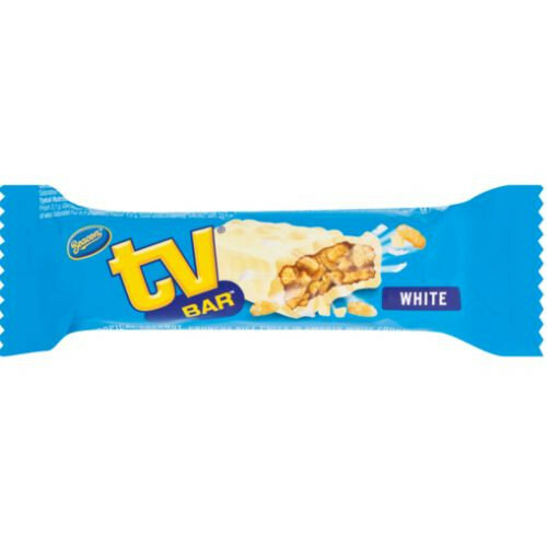 TV Bar White is a 47g chocolate bar in the confectionery category, ideal for ambient storage with a shelf life of 1825 days. It is sold as a single unit.