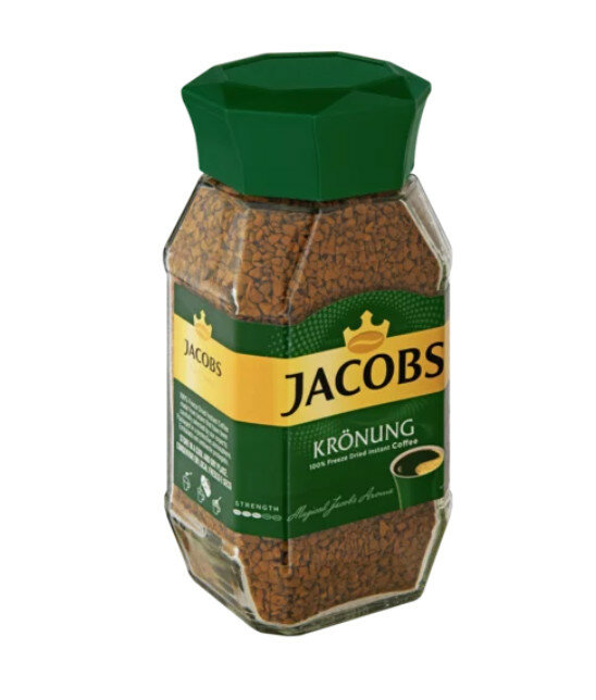 Jacobs Kronung Instant Coffee is a 95g pack of coffee designed for quick preparation. Store in a cool, dry place; shelf life is 365 days.