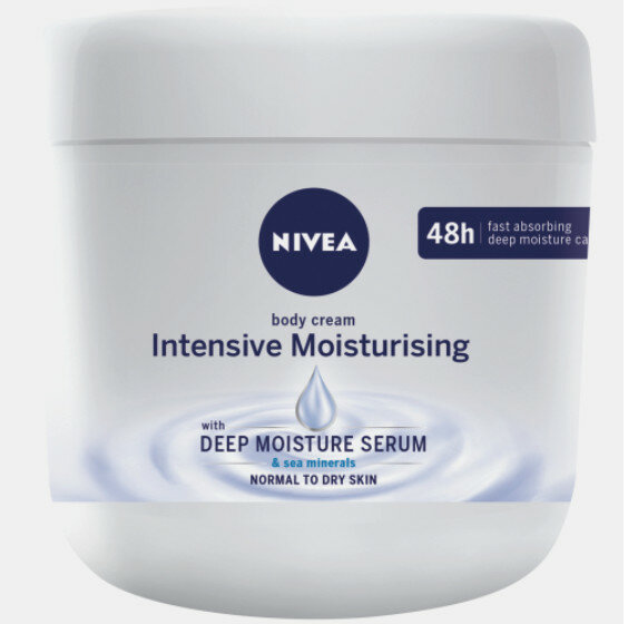 Nivea Intense Moisture Body Cream is a 400ml body lotion designed to provide deep hydration. Store at ambient temperature; has a shelf life of 365 days.