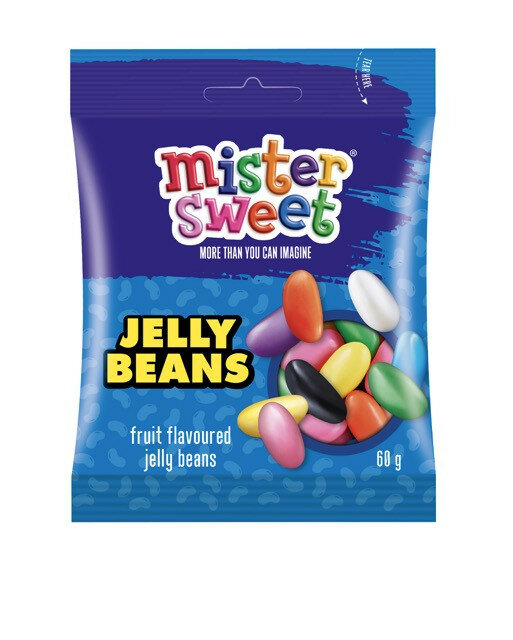 Mister Sweets Jelly Beans are a 60g pack of assorted flavored candies, suitable for ambient storage with a shelf life of 365 days. Sold as a single unit.