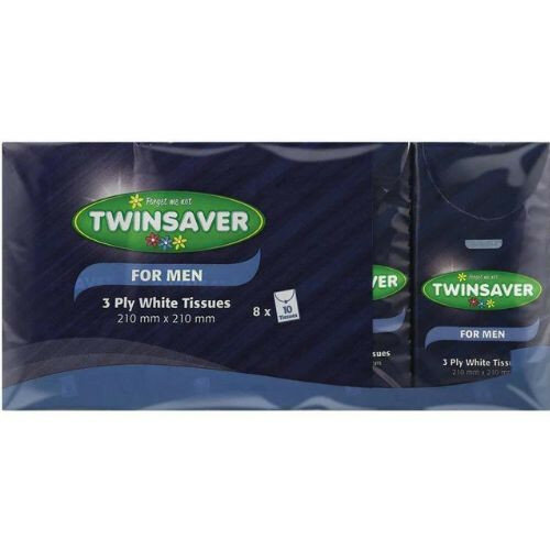 Twinsaver Facial Tissues 3PLY Men are soft, absorbent tissues designed for personal care. They have an ambient storage requirement and a shelf life of 180 days. Suitable for everyday use.