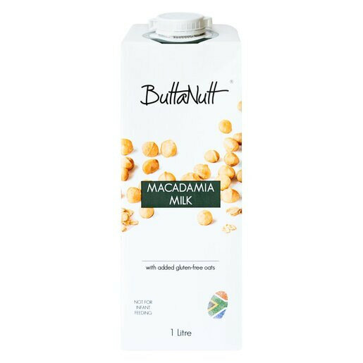 ButtaNutt Macadamia Milk is a 1L shelf-stable milk alternative made from macadamia nuts. It has a shelf life of 90 days and is stored at ambient temperatures.