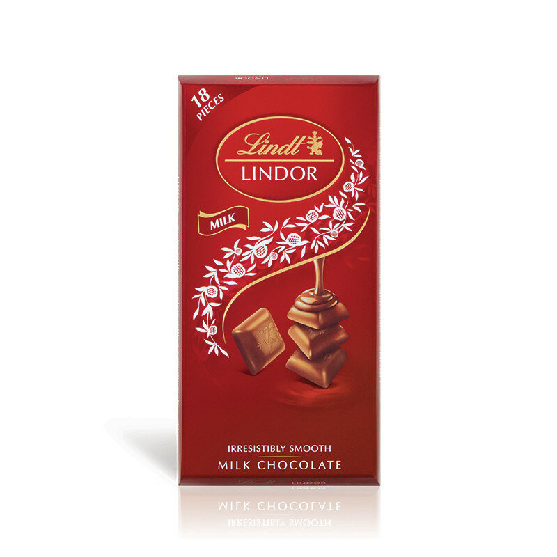 Lindor Singles Milk is a 100g chocolate slab known for its smooth melting filling. Store at ambient temperature; has a shelf life of 180 days.