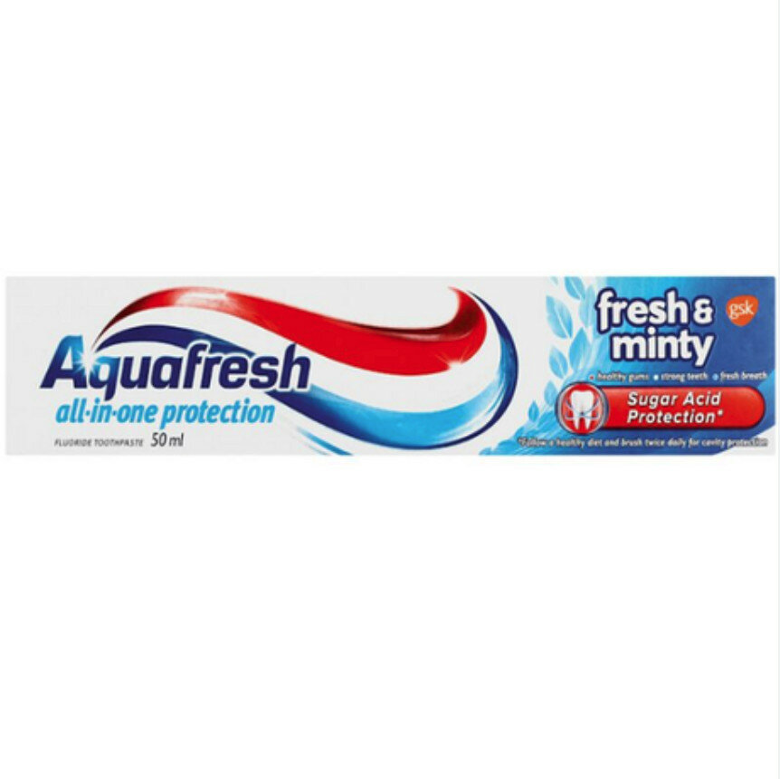 Aquafresh Fresh & Minty is a 50ml toothpaste designed for daily oral care. It can be stored at ambient temperature and is suitable for everyday use.