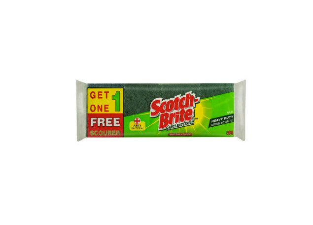 Scotch-Brite Kitchen Scourer 3s is a pack of three abrasive pads designed for kitchen cleaning. Store at ambient temperature and use within 30 days of opening. SKU: SKC001158.