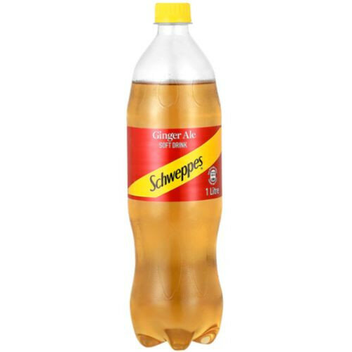 Schweppes Ginger Ale is a carbonated soft drink in the tonic & mixers category, available in a 1-liter bottle. Store at ambient temperature with a shelf life of 120 days.