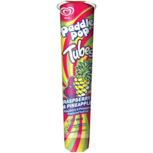 Paddle Pop Pineapple Raspberry Ice Cream in a 90ml unit is a frozen dessert with a shelf life of 90 days, stored at ambient temperature. Ideal for on-the-go enjoyment.