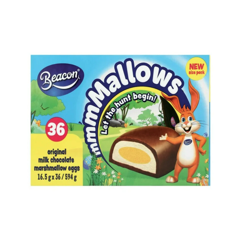 Beacon Marshmallow Egg 36 Pack contains 36 marshmallow eggs, suitable for ambient storage with a shelf life of 180 days. Ideal for snacking or festive occasions.