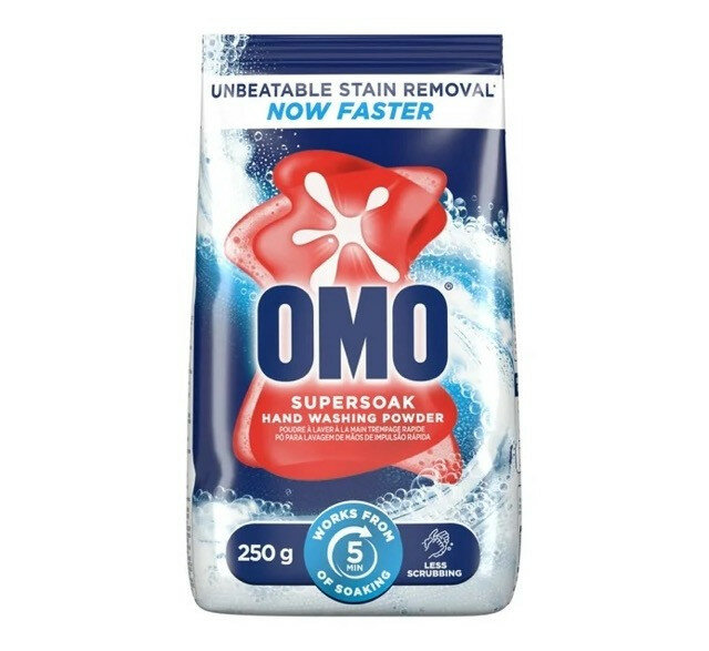 OMO Hand Washing Powder is a laundry detergent available in 250g and 300g sizes. It is suitable for ambient storage and has a shelf life of 24 days.