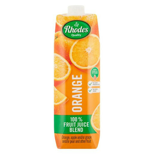 Rhodes Fruit Juice Orange is a 1L ambient fruit juice suitable for grocery retail, with a shelf life of 30 days. Store in a cool, dry place. SKU: SKC000923.