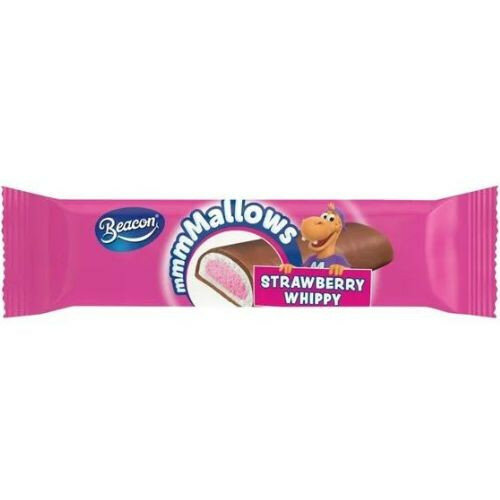 Strawberry Whippy is a 41g marshmallow treat with a sweet strawberry flavor. It has a shelf life of 30 days and can be stored at ambient temperature.