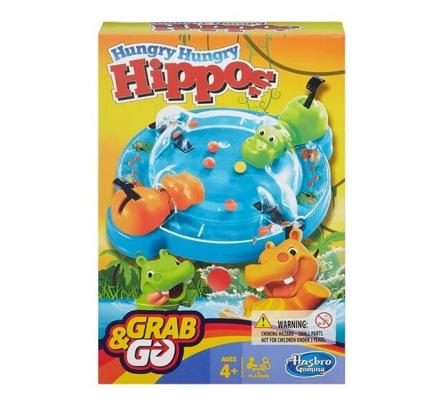 Hungry Hippo Grab & Go Game is a card and party game suitable for all ages. It can be stored at ambient temperature and has a shelf life of 365 days.