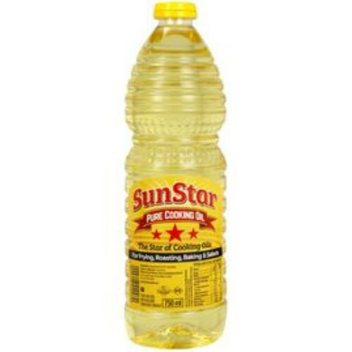 Sunstar Cooking Oil 750ml is a vegetable oil suitable for various cooking methods. Store at ambient temperature with a shelf life of 90 days.