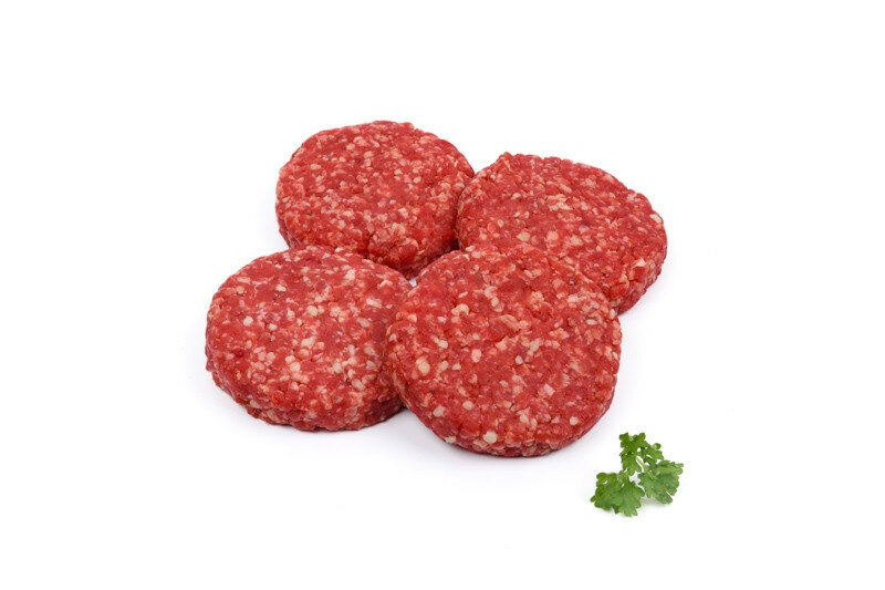Bill Riley Pure Beef Burgers Large pack contains 4 grass-fed beef burgers, weighing 1kg total. Store ambient; consume within 7 days of opening.